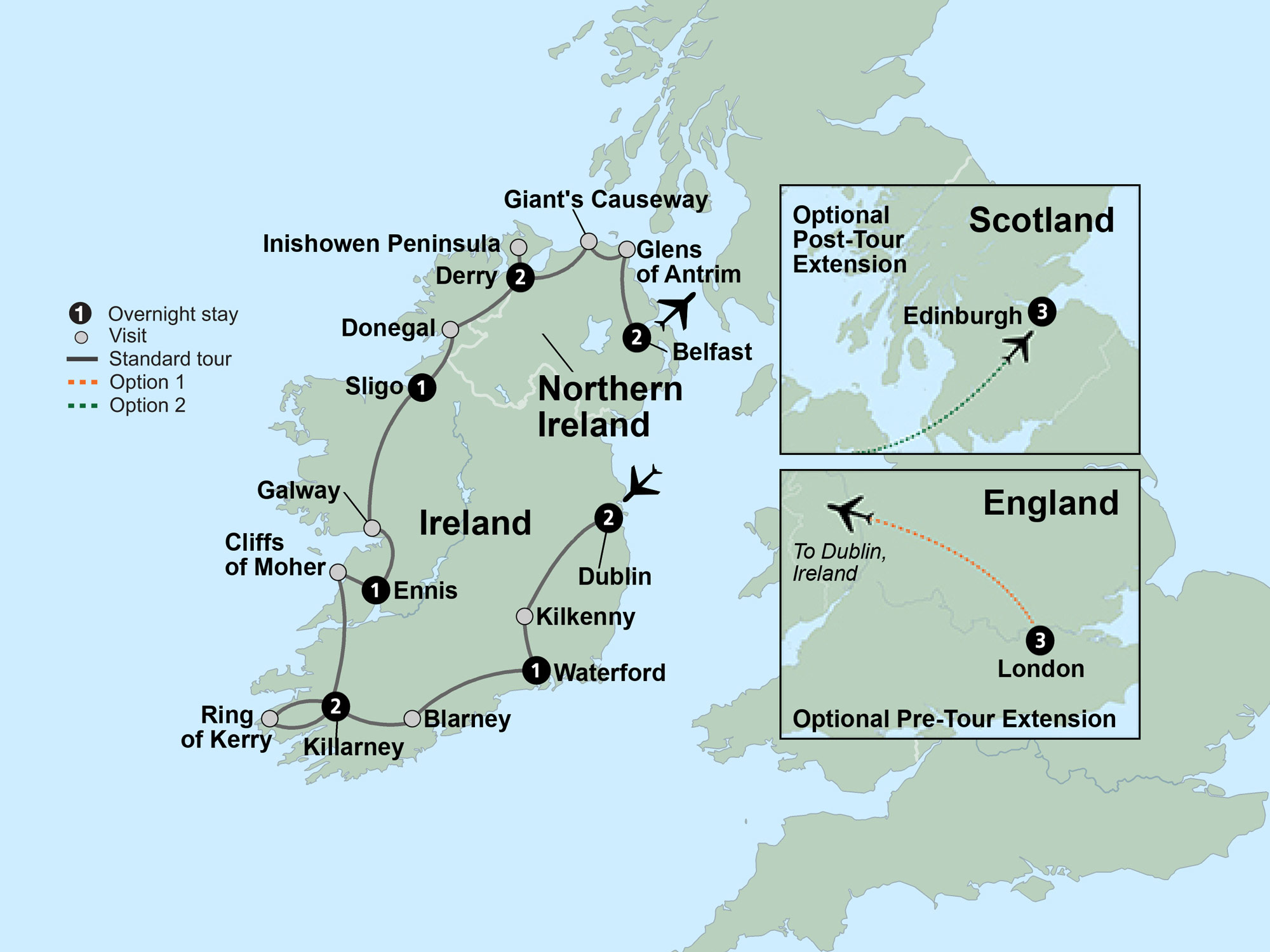 Overnight Flight. Set out on an amazing Irish adventure that tells the complete story of the shades of Ireland. Meet up with Nelson and begin your journey with everyone's favorite "Hollywood Insider!"